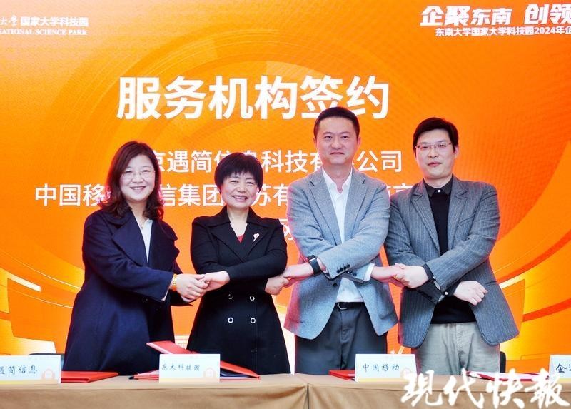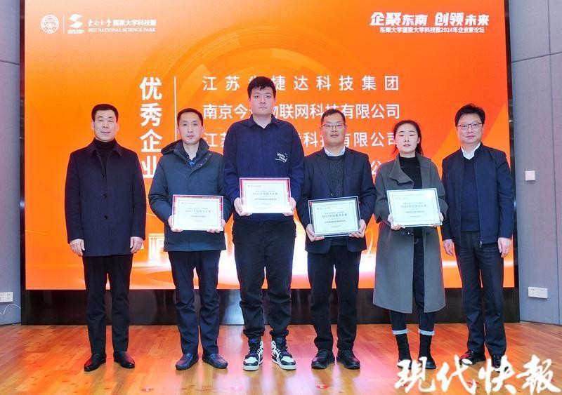 现代快报讯(通讯员 戴炘含 曲钢 记者 李楠)1月31日,“企聚东南 创领未来”东南大学国家大学科技园2024年企业家论坛在南京举办。据悉,本次企业家论坛聚焦科技创新热点话题,探讨未来发展机遇,搭建了经验分享、交流合作的平台,有效促进了政校企融合。现场,东南大学国家大学科技园与3家单位签订服务合作协议。