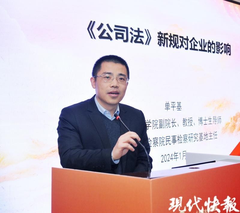 东南大学法学院副院长、博士生导师单平基教授作《新规对企业的影响》主旨报告,从强化股东出资责任、完善公司治理结构以及加强股东权利保障等方面,对《公司法》新旧规定进行对比解读,并结合实际案例,深入分析了新规对企业的影响。此外,南京华飞数据技术有限公司总经理阎星娥作《成长型企业内控管理探讨》主旨报告。