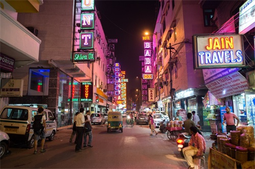 夜色下的新德里灯红酒绿,现代化气息比较浓郁,随处可见的商店、酒店、餐饮店等,不过有一点不好的是这里的路边摊实在是太多了,突突车也是“横行无阻”,比较影响游客的旅行体验。