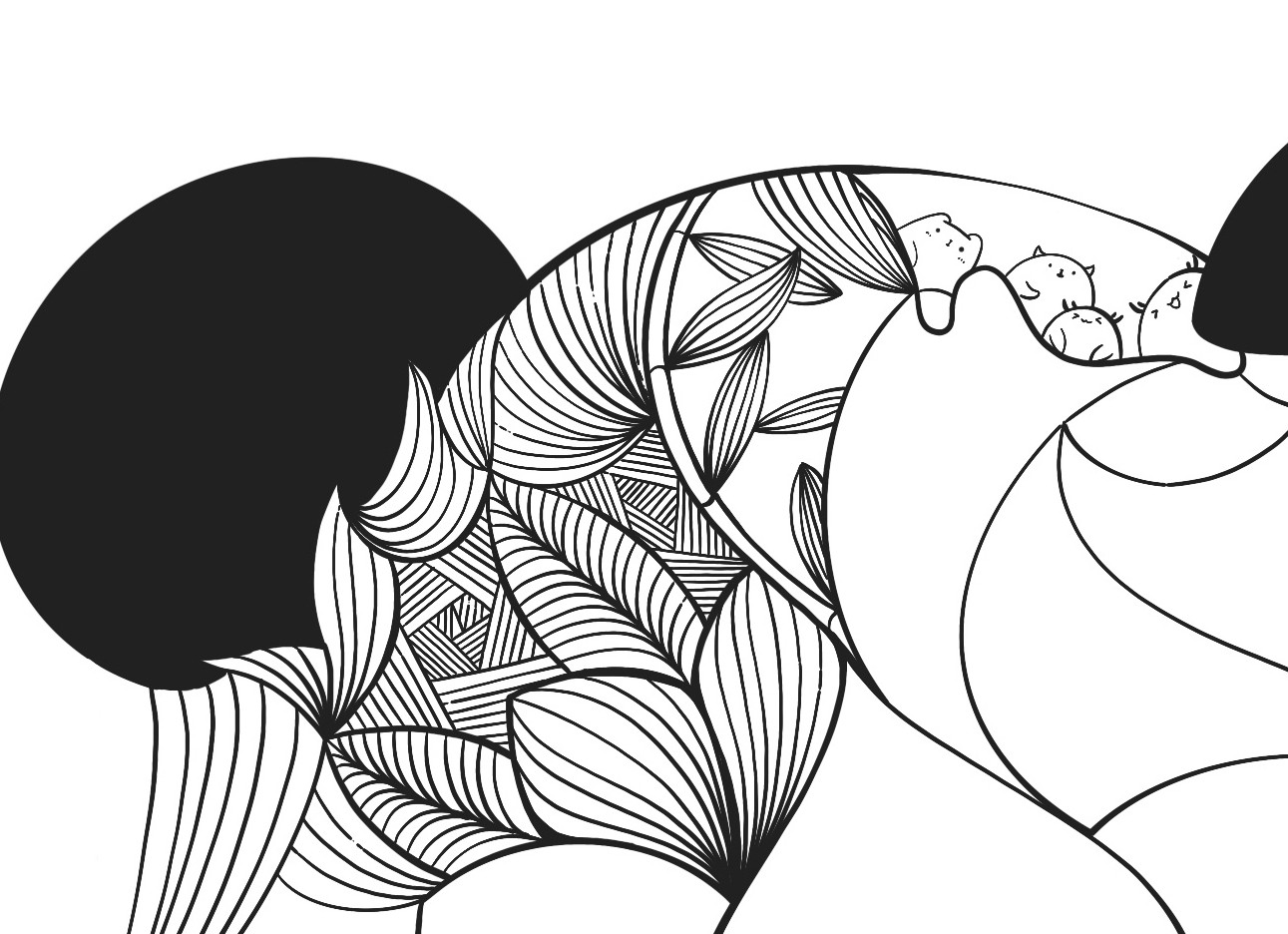 线条画出外轮廓,都是曲线哦~