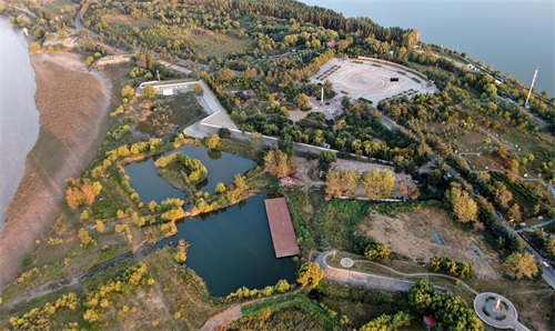 ↑这是9月18日在河南省郑州市惠济区拍摄的花园口旅游区(无人机照片)。新华社记者 郝源 摄