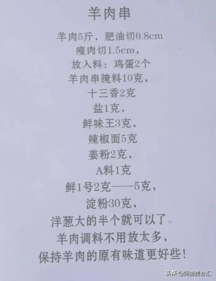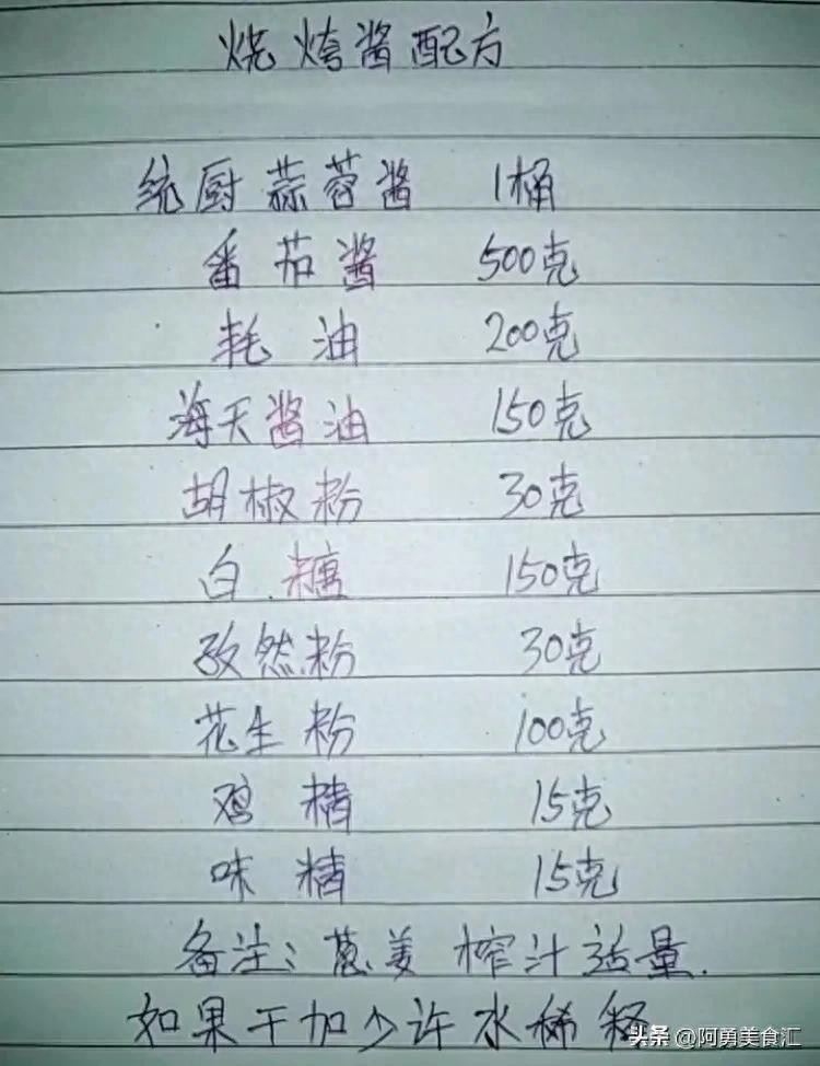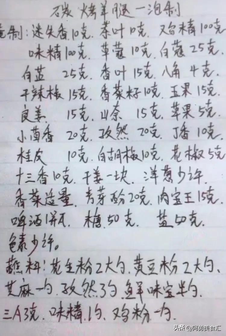 我开烧烤店时整理的23个烧烤技术配方,非常珍贵的笔记,拿去摆摊