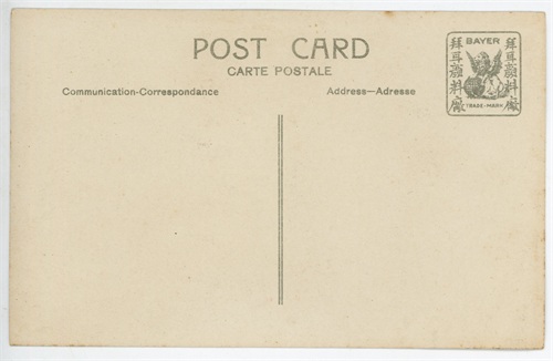 德国则在1874年就已出现广告明信片,进入中国进行市场宣传的拜耳颜料厂当然深谙其中道理,印制带有中国风景、风情的明信片进行广告宣传。提起德国拜耳集团,知道的人或许不多。如果提起阿司匹林、海洛因、美沙酮、环丙沙星等就应该是家喻户晓了,这些都属于拜耳集团的重大发明。。1863年8月1日,商人弗里德里希·拜耳(Friedrich Bayer)与颜料大师约翰·弗里德里希·威斯考特(Johann Friedrich Weskott)在今天德国乌帕塔的巴门(Barmen)创建了一家颜料公司──弗里德里希·拜耳公司(Friedr. Bayer et comp.)。1882年,拜耳的染料首次在中国市场上出现。