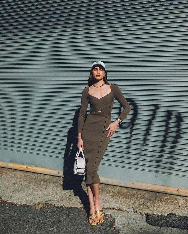 有自信挑战能让身材曲线毕露的低胸贴身洋装的话,那就再试试用棒球帽的搭配,制造风格感的对比效果,在性感与休闲中巧妙碰撞出火花。