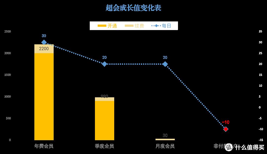 每日:超级会员期间,每天会赠予成长值点数。年度会员每天增加30点成长值,季度会员和月度会员每天增加20点成长值。相应的,非会员每天扣除10点成长值。