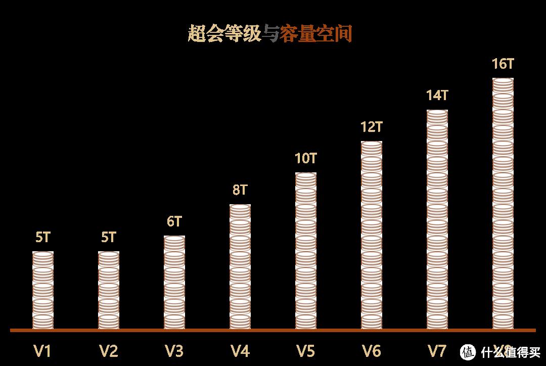 前2级容量只有5T,从3级开始,每增加1级,容量空间增加2T,最终到达16T。