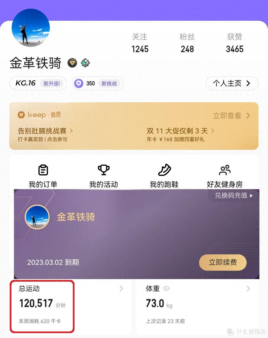 Keep记录的运动时间共计120517分钟,每天不是在运动,就是在去运动的路上。天天看电脑和手机,不运动怎能行。