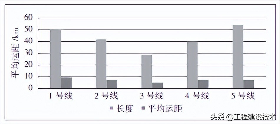 从预测数据看,以南昌市轨道交通2号线为例(全线41.9km,设站37座,平均站距约1.2km),初期每日的平均运距约7.1km,约占全长的17%,近期每日的平均运距约6.0km,约占全长的14%,具有明显下降。