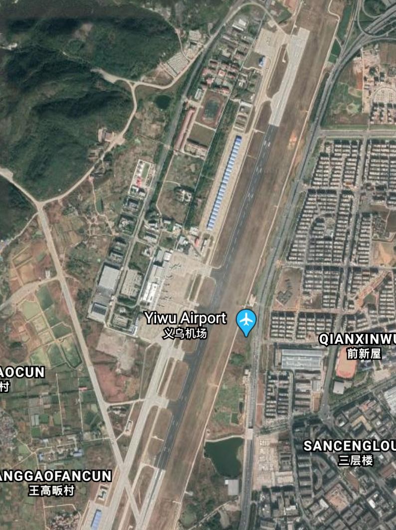 义乌机场(IATA代码:YIW;ICAO代码:ZSYW)位于浙江省金华市义乌市,距离市中心5.5公里,为4D级军民合用运输机场,是华东地区首座县级民航机场。义乌机场于1991年4月正式建成通航,2016年完成四期扩建工程。义乌机场目前拥有两座航站楼,分别为T1(中国国内)、T2(国际及港澳台)。2019年,义乌机场旅客吞吐量202.0万人次,同比增长23.5%,位居中国大陆地区第74位。