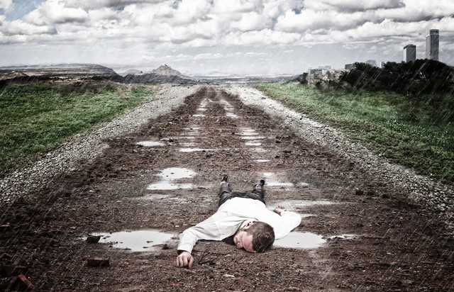 这哥们在笑什么,逃出生天,车有人修了?