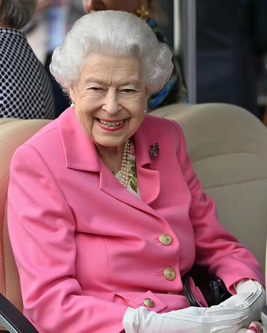 英女王花展上容光焕发,胸针是19岁生日礼物,77年了依旧亮丽如初
