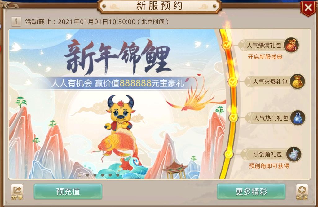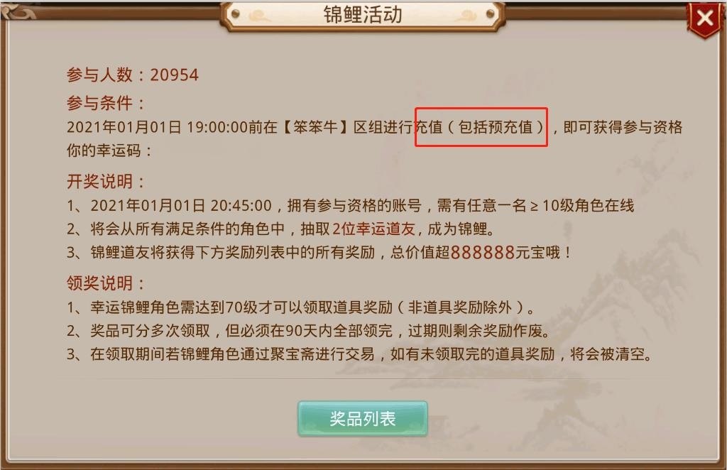 额,偏离话题了,返回说说新年锦鲤活动,这个得划重点,截止12-31,预充值人数已经破2万了。