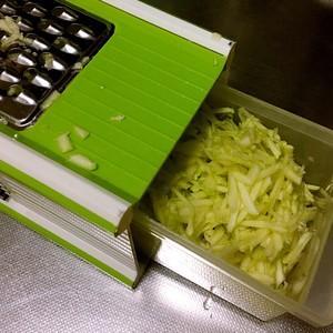 用纱布包着西葫芦丝,用力挤出水分,一定要用力挤!