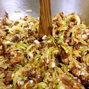 6、把肉馅和挤干水分的西葫芦搅拌均匀。