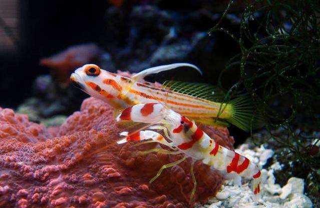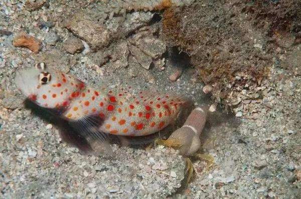 另外,更有趣的是,枪虾和虾虎鱼的共生关系。目前已有130多种虾虎鱼与20多种枪虾有共生关系,大多数此类品种分布在印度洋和太平洋区域,他们非常依赖彼此,而且双方都能得到好处。枪虾通常是盲的,一个枪虾会挖一个洞,然后一对虾虎鱼会游来同住,作为挖洞的回报,枪虾会受到虾虎鱼的望风保护。