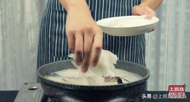 ▲大火煮,煮开后盖上锅盖,继续用大火煮5分钟,这样才能将鱼汤熬白;