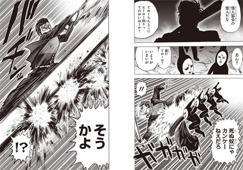 所以关键时刻KING登场了,期待已久的世界名画终于来了,原作KING就利用自己的气势成功的镇住了四龙,给足了其他S级英雄恢复和喘息的时间,这次村田的重制版还以为给删了,结果在最危急的时候给画出来了,虽然说没有赛克斯少了一龙,不过也不差,三龙也足够给KING排面和面子了,说不定可以等到后续饿狼乱入战场或者老师过来一拳先收拾了天然水。