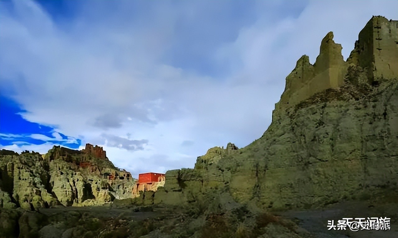 东嘎·皮央遗址,位于札达县境内的东嘎和皮央两村,海拔4400米,是目前所发现的海拔最高、壁画面积最多的高原石窟群,是被誉为可以和“敦煌石窟”媲美的石窟。