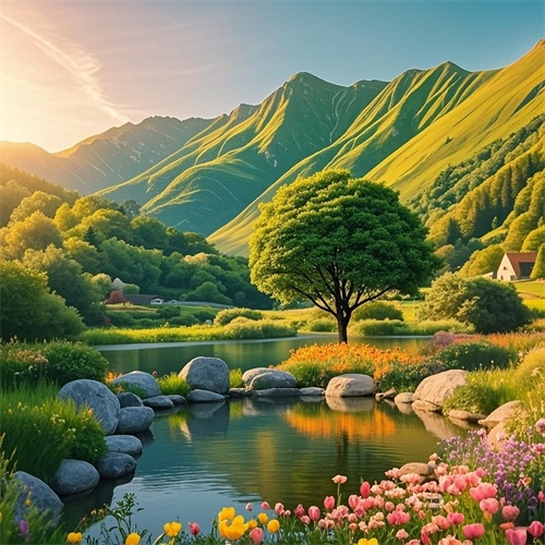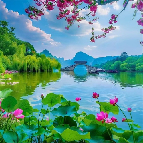 翠柳依风摇玉露,夭桃映日绽琼株。