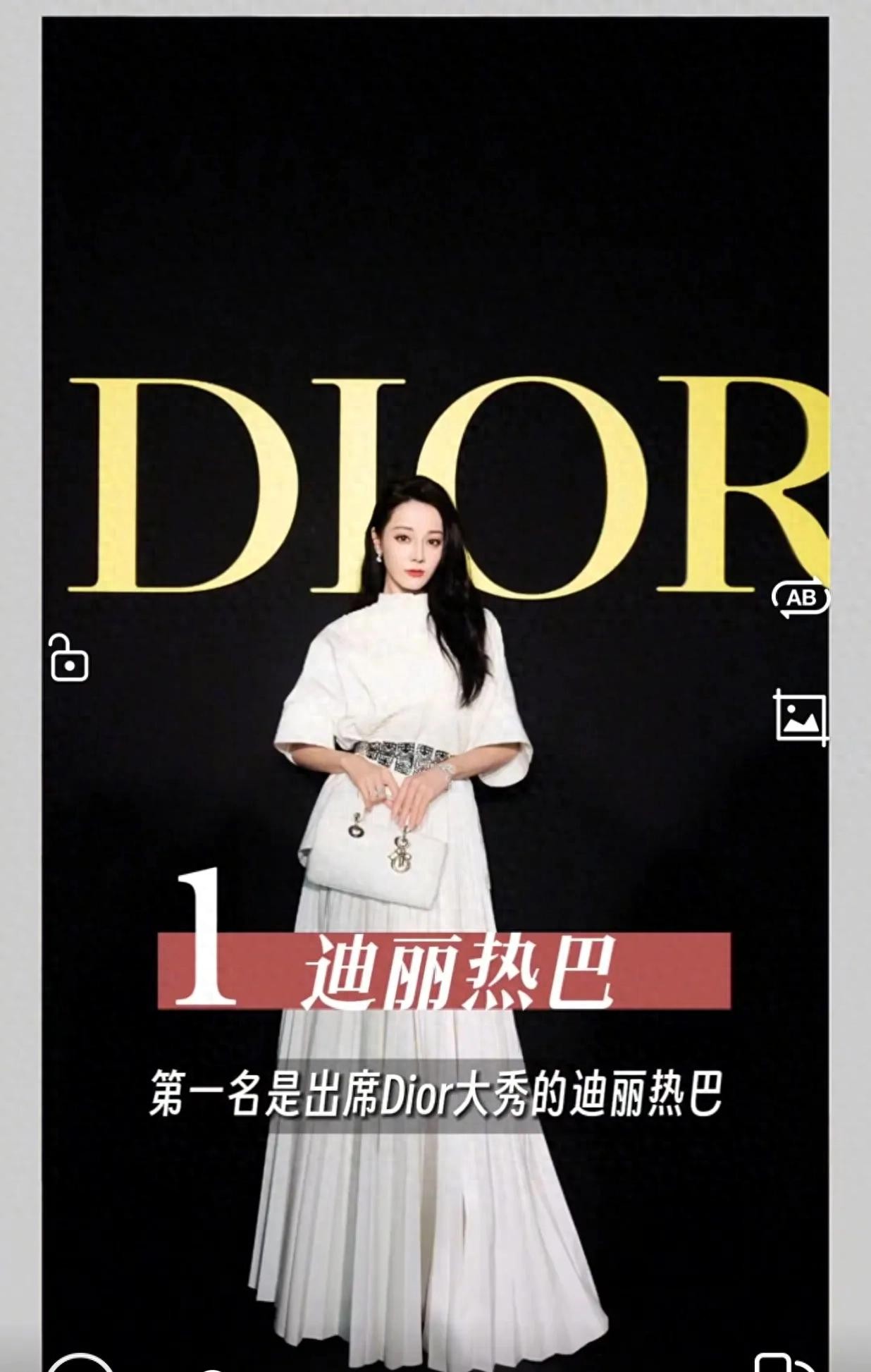 迪奥秀场的迪丽热巴以770万美元的媒体价值位居第一。