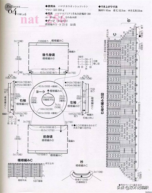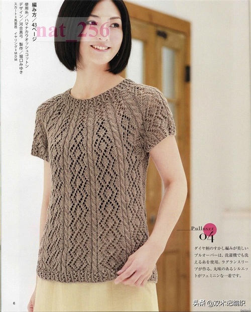 棒针款,从领口往下编织的春夏短袖毛衣图解