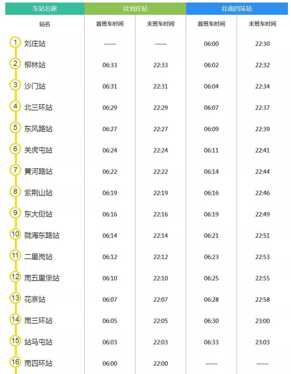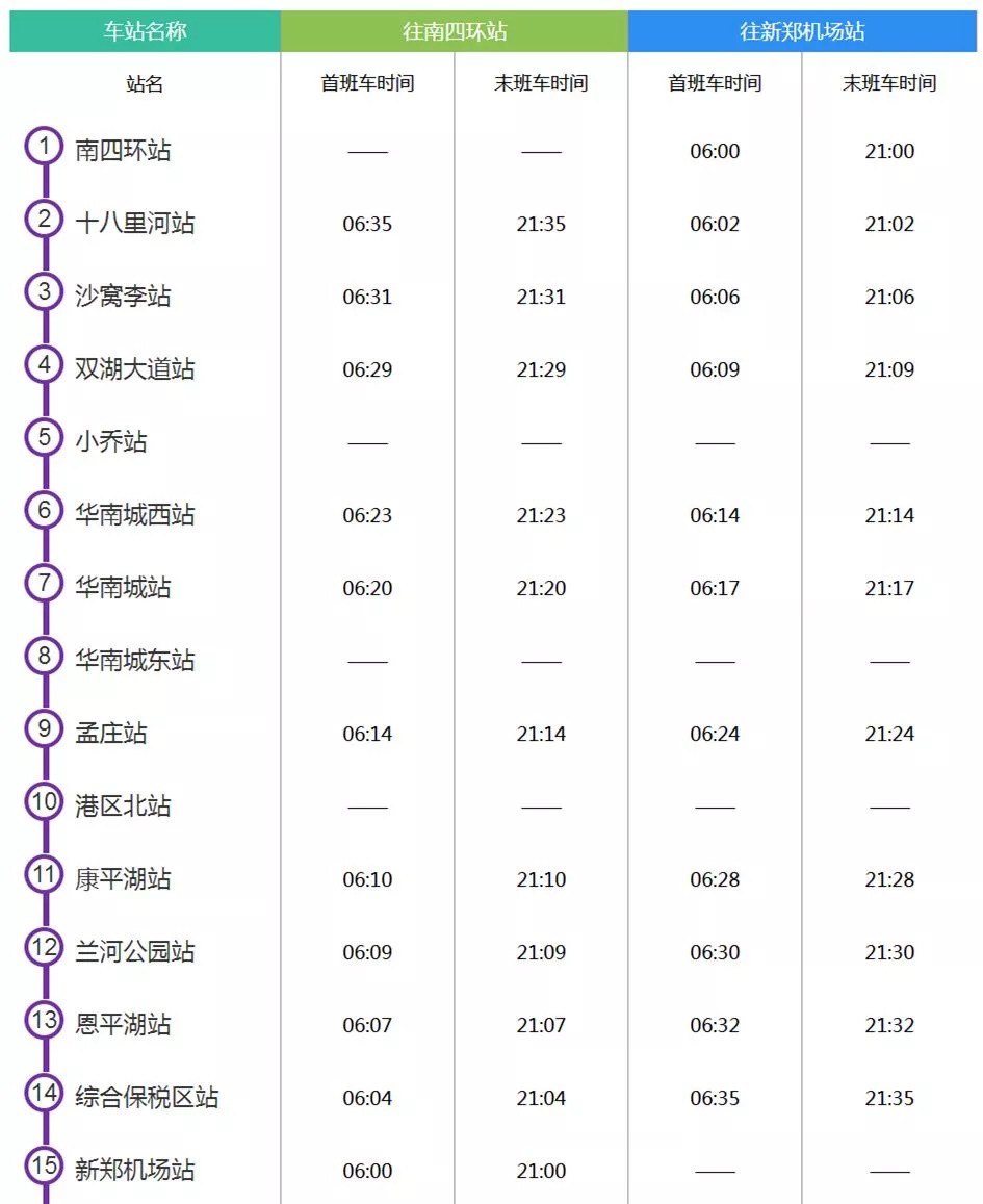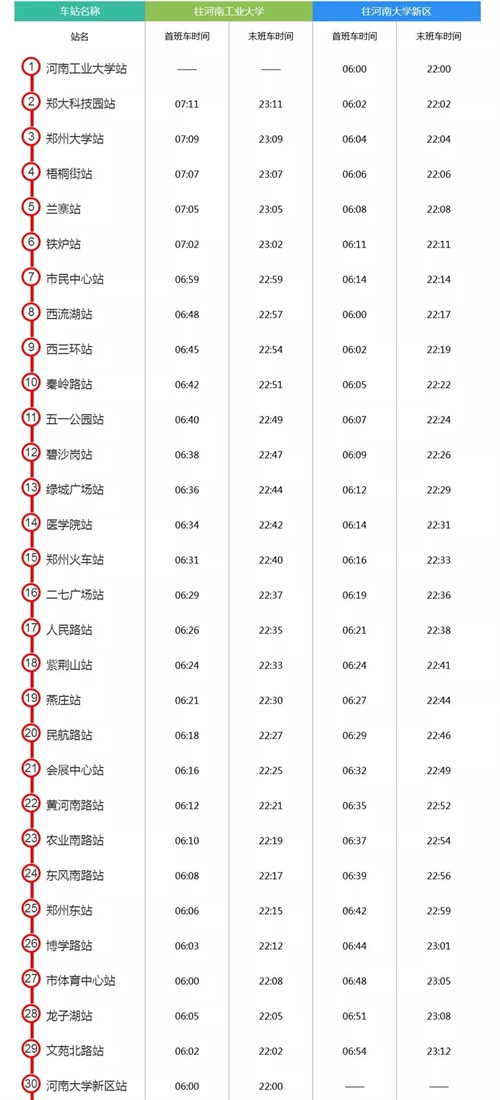 郑州地铁最新的时刻表,