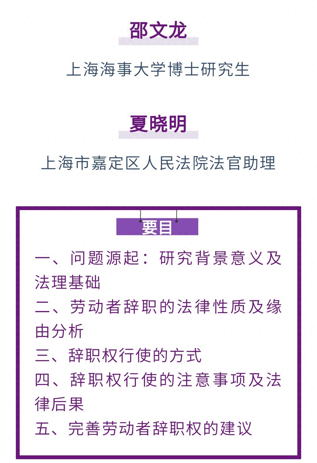 邵文龙 夏晓明|劳动者的辞职权问题研究