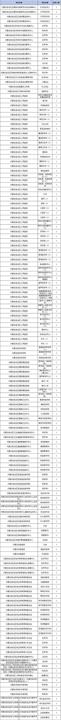 1.将兴安盟蒙医院招聘岗位中“泌尿外科医师岗位2”,专业要求中增加研究生专业“临床医学类(1051)”。