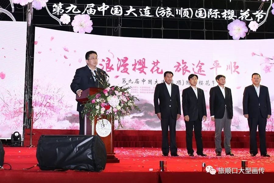 旅顺口区区长李军首先致欢迎辞,随后,市委常委、宣传部长李鹏宇宣布樱花节开幕。