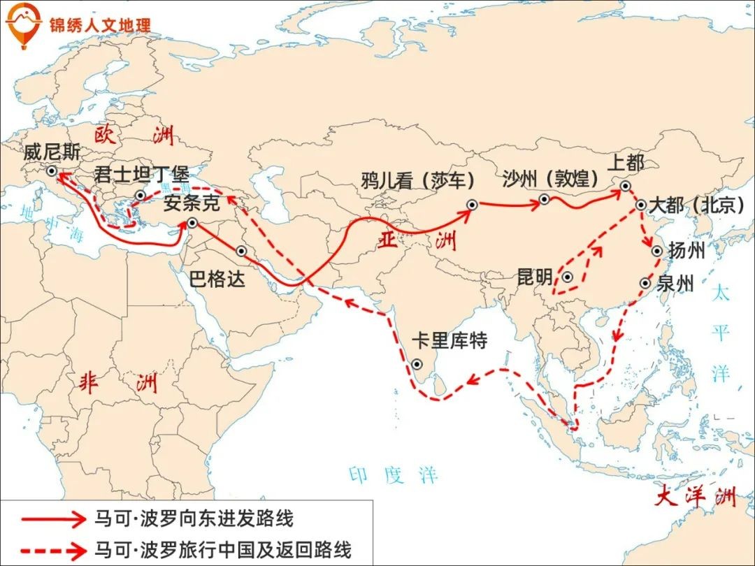 13世纪,马可·波罗旅行路线 | 锦绣人文地理