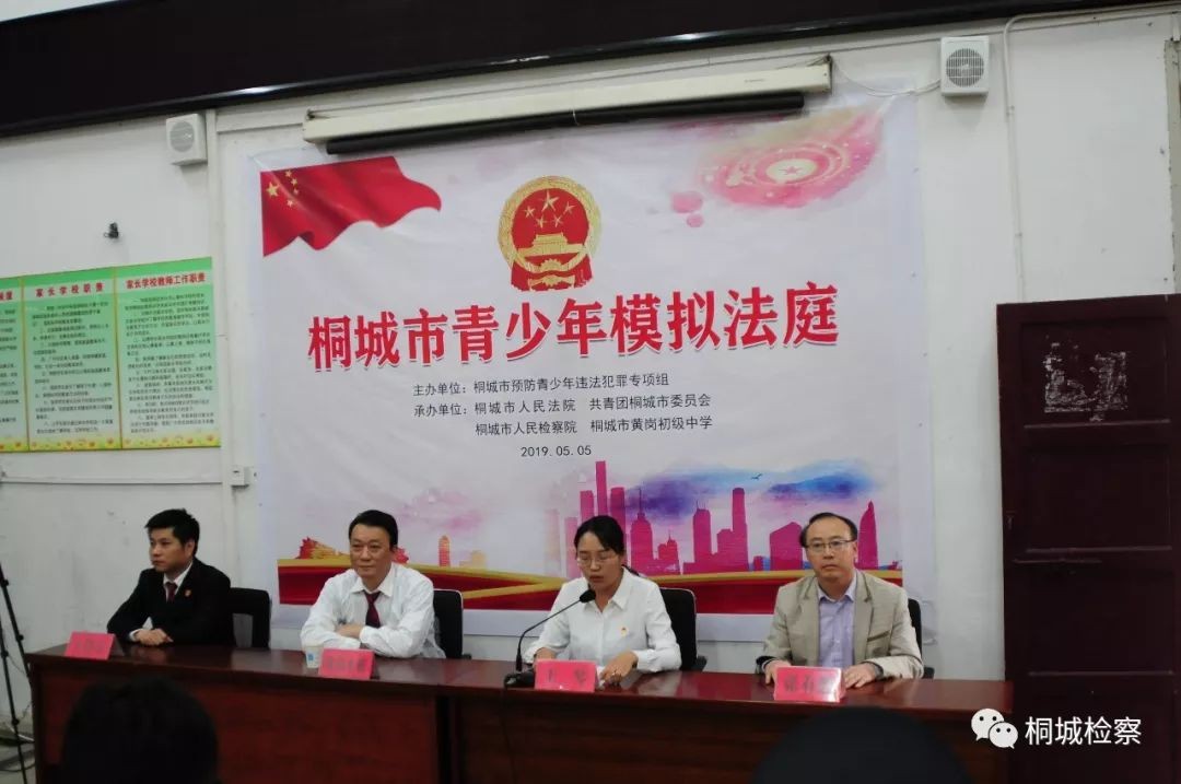为着力提高在校学生自我保护意识和自觉守法意识,从源头上预防和减少青少年违法犯罪案件发生,构建和谐稳定的校园环境,5月5日,桐城市人民检察院联合桐城市人民法院、共青团桐城市委员会到桐城市黄岗初级中学开展模拟法庭进校园活动,为该校七年级至八年级两百余名师生呈现了一堂生动别样的法治教育课。