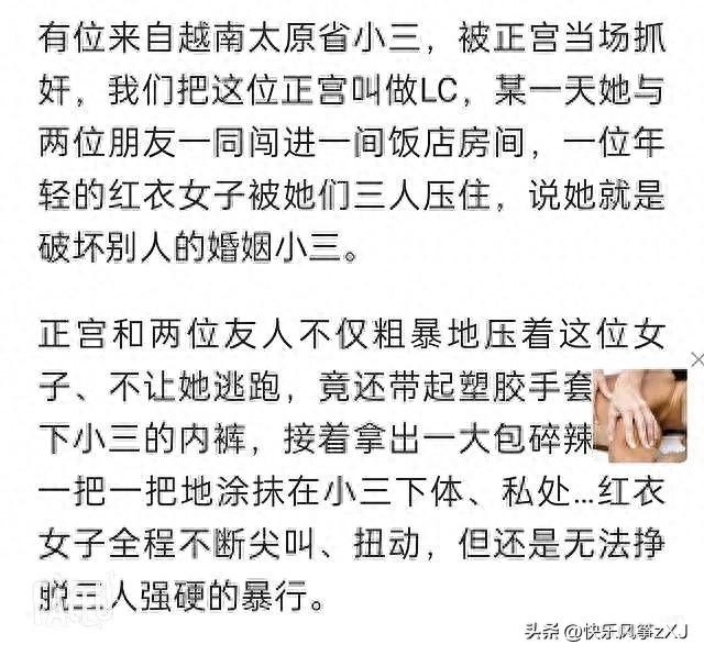 近日,一则震撼的新闻引起了公众的广泛关注:一位正宫妻子不畏艰险,以极其强势的方式抓奸现场,她竟然将剁碎的辣椒塞入小三的私处。这个令人发指的举动坚定了正宫的立场,让人不禁为她鼓掌叫好。