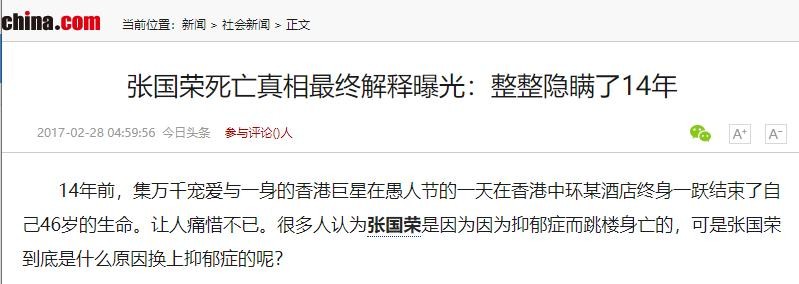 那莫过于在2003年的时候,张国荣哥哥选择一种极端的方式和大家告别,要知道当年他可已经是亚洲顶级巨星了。