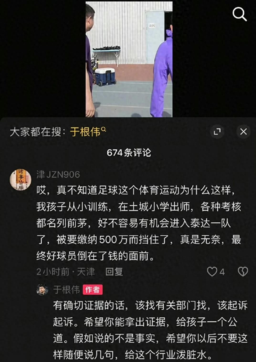 面对家长的投诉,于根伟做出了回应,他强调,如果家长能够提供确凿的证据,可以通过法律途径解决问题;如果没有证据,就不应随意污蔑足球行业。这一回应展现了于根伟作为天津津门虎总经理兼主教练的立场,他显然希望通过理性方式来应对这一事件,避免不实言论对个人和俱乐部的影响。同时,于根伟也传达了对足球行业声誉的重视,表明了自己不容忍任何不真实的指控。