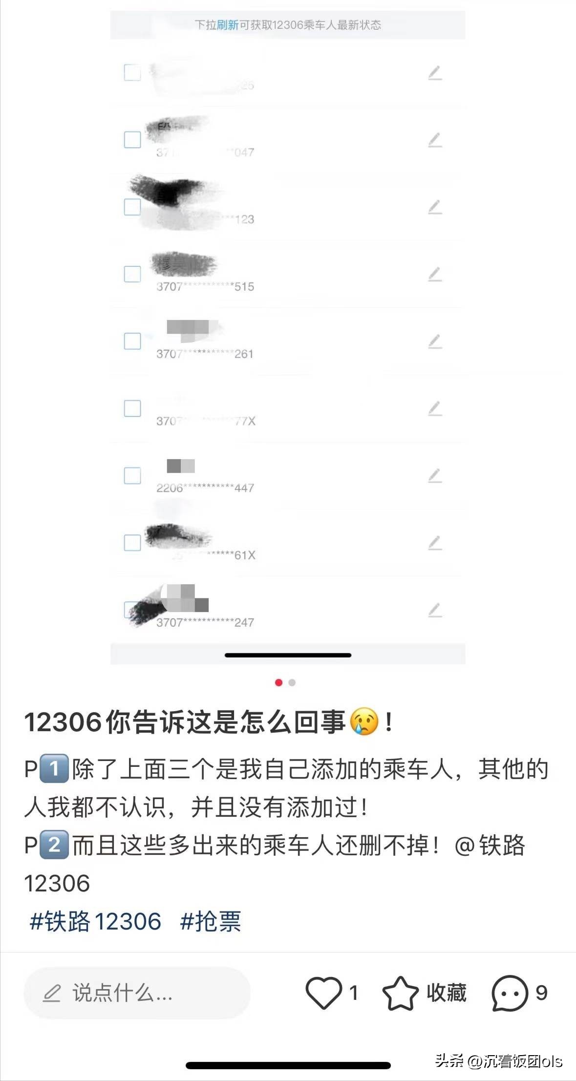 有网友反映,其个人12306账号中出现几名身份不明的旅客信息,且无法删除。图片来源网络