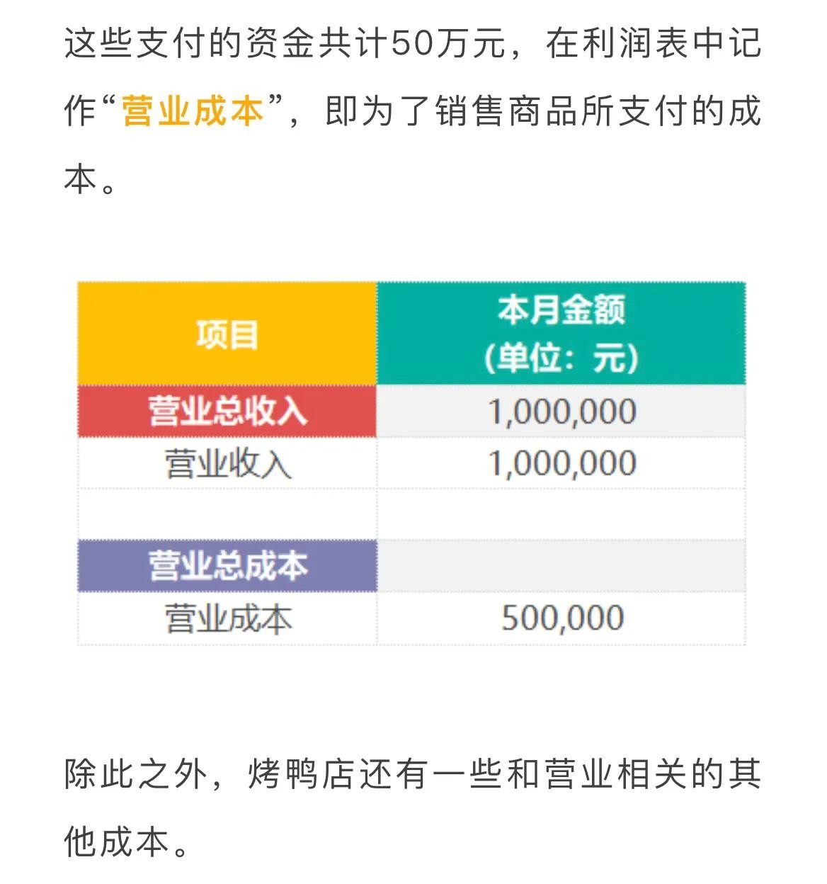 对烤鸭店来说,卖烤鸭不仅仅有营业成本,还会有销售、管理、研发、财务等费用和收入,它们也会极大地影响利润水平。