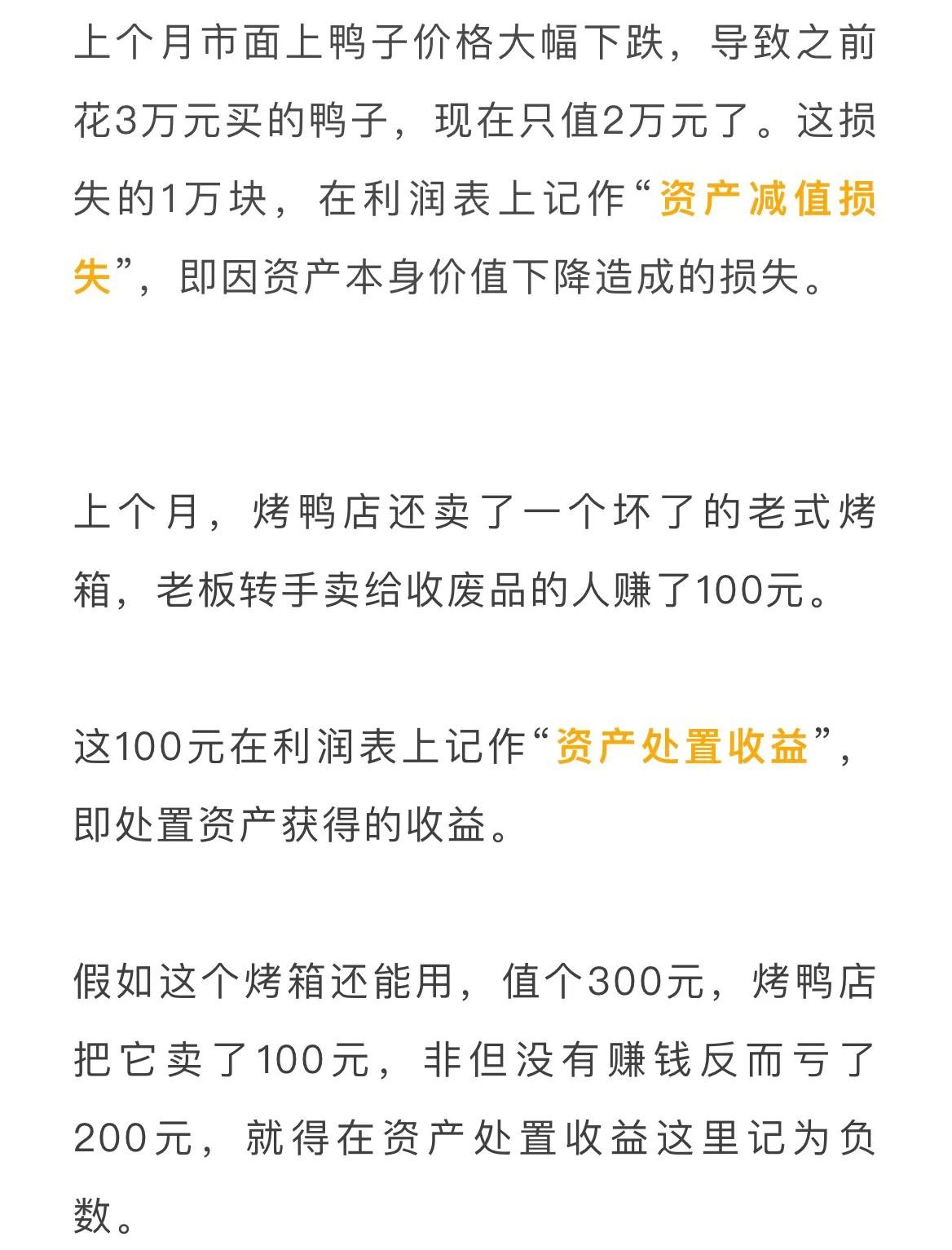 也就是说,只要是这家店的收入支出,利润表都需要记录。不仅仅是销售烤鸭的收入和支出,还包括其他方面的收支情况,比如老板炒股的收入,政府给的补贴。