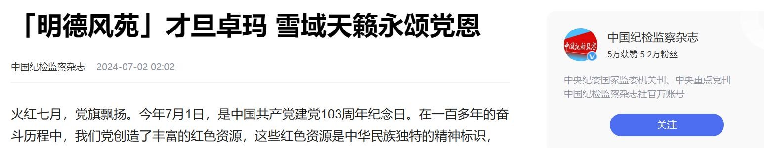 参考资料:中国纪检监察杂志——「明德风苑」才旦卓玛 雪域天籁永颂党恩