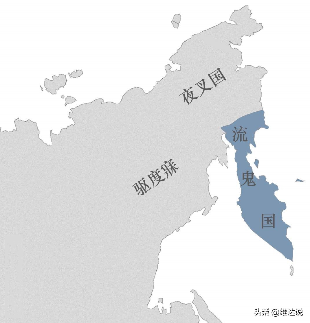 查阅唐史《通典》中关于流鬼国的记载如下:“其北至夜叉国,余三面皆抵大海”。这里透漏出两点信息,一是流鬼国位于“夜叉国”之南;二是流鬼国在一个三面环海的半岛上。当然无论是夜叉国还是流鬼国并非真是什么鬼怪,而是由于地处亚寒带针叶林地区,纬度较高,气候寒冷,当地不能从事农耕,只能以渔猎为生。手持铁叉、身穿兽皮带兽牙且以捕食驯鹿海豹海象的迥异特性,对于以耕作为生的中原文明而言,确实像极了“夜叉”、“流鬼”。