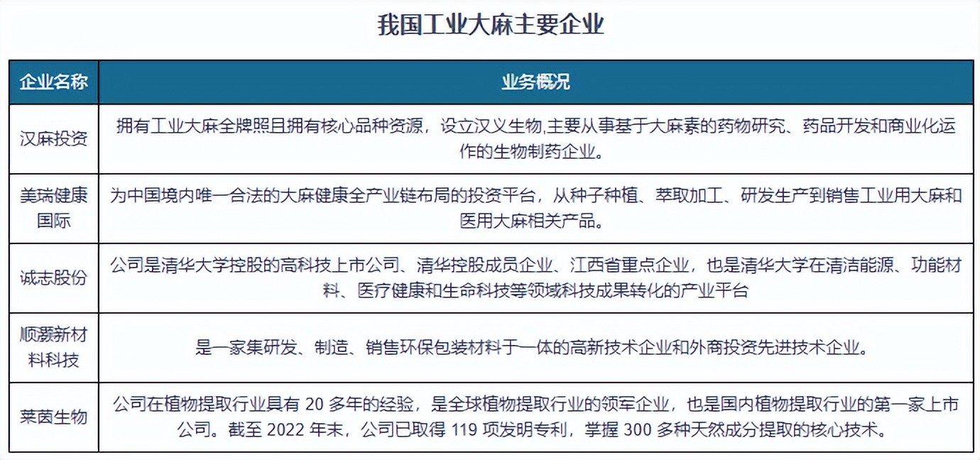 二、国内仅汉麻投资等少数企业具备加工资质,工业大麻市场集中度较高