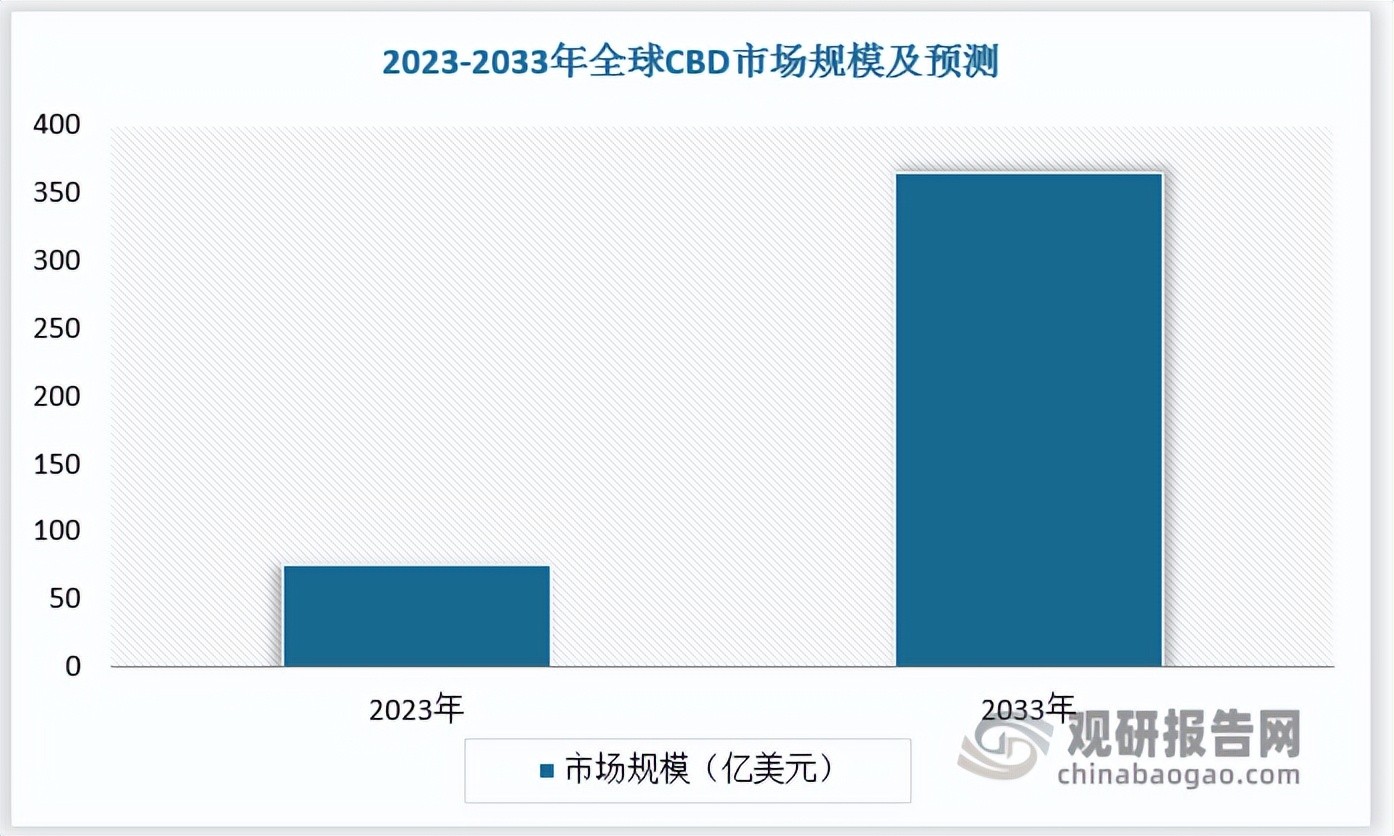 工业大麻的籽、花叶、皮、杆、根可应用于纺织、食品、日化、医药等领域。工业大麻花叶中的 CBD(大麻二酚)可用于治疗厌食症、艾滋病和癫痫等疾病。除医疗用途外,海外成熟市场已将以CBD为主的大麻素添加进更多应用场景中,如日化用品、食品饮料、宠物用品等,CBD未来发展可期。2023年全球 CBD 市场规模为 76 亿美元,其中北美占比60%。CBD合法化和监管变化逐渐消除需求转化障碍,其治疗特性被不断开发,叠加投资不断涌入,预计2033 年全球 CBD 规模将达到 366 亿美元。