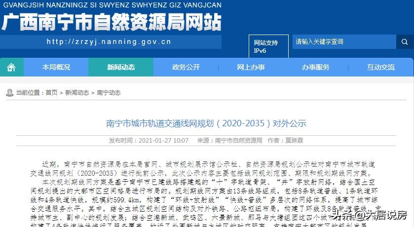 其实,早在去年12月16日,南宁市自然资源局就发布了《关于南宁市城市轨道 交通线网规划(2020-2035)报送 审批前公示的公告》。