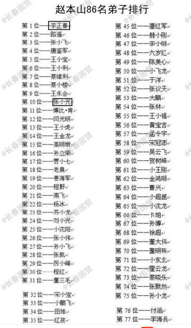 赵本山众多徒弟中比较可惜的是大徒弟李正春和10号徒弟张小光,两人都已经离开人世。其中李正春因为得病无法医治而去世,而张小光因为骑摩托闯高速而意外身亡。