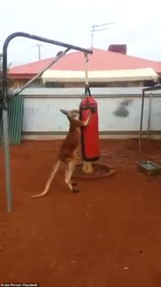 Pervan先生称这只袋鼠为Rocco,他在视频中说:“快看,Rocco又在训练了”。