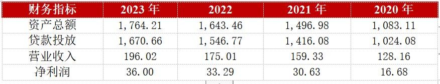 公司2021-2023年贷款投放分别为1,416.08亿、1,546.77亿、1,670.66亿。受宏观经济下行影响,公司贷款投放增速有所放缓。公司2023年营业收入196.02亿,同比增加12.01%,净利润36.00亿,同比增长8.14%,盈利能力强。公司2023年贷贷款投放净增加额254.41亿,较2022年略有增长。
