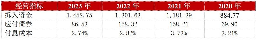 受宏观经济下行影响,公司不良贷款率有所上升,坏账核销增加,拨备覆盖率有所下降。公司2021-2023年付息成本分别为3.73%、2.82%、2.74%,主要受到资产荒影响,公司负债端成本下降较快。