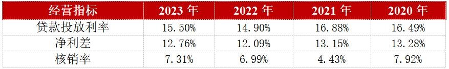 公司2021-2023年利息收入分别为205.98亿、220.79亿、249.43亿,贷款投放利率分别为16.88%、14.90%、15.50%。