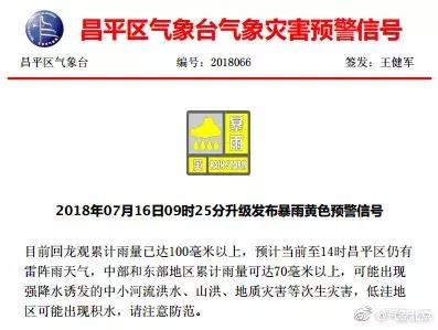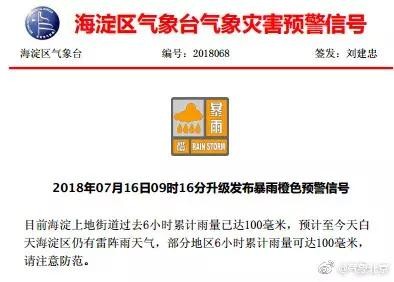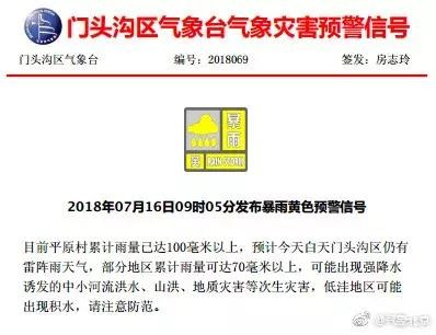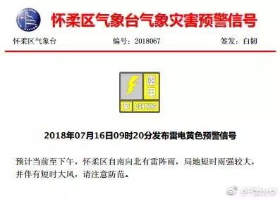 预计至16日夜间本市大部分地区将有雷阵雨天气,局地短时雨强较大,小时雨强可达30mm以上,山区及浅山区可能出现强降水诱发的中小河流洪水、山洪、地质灾害等次生灾害,低洼地区可能出现积水,请注意防范。