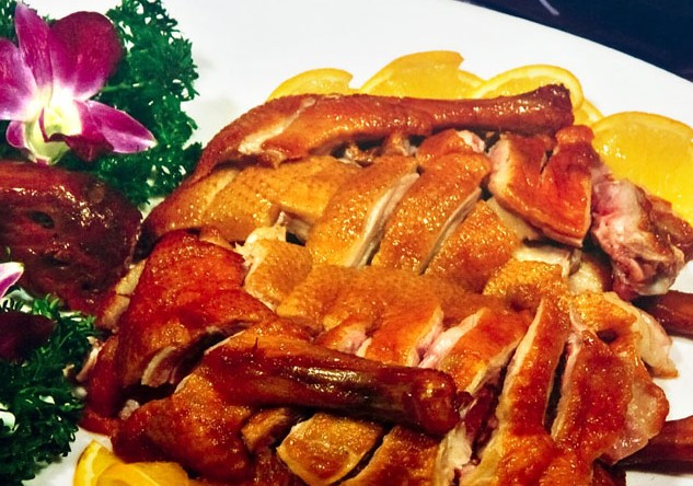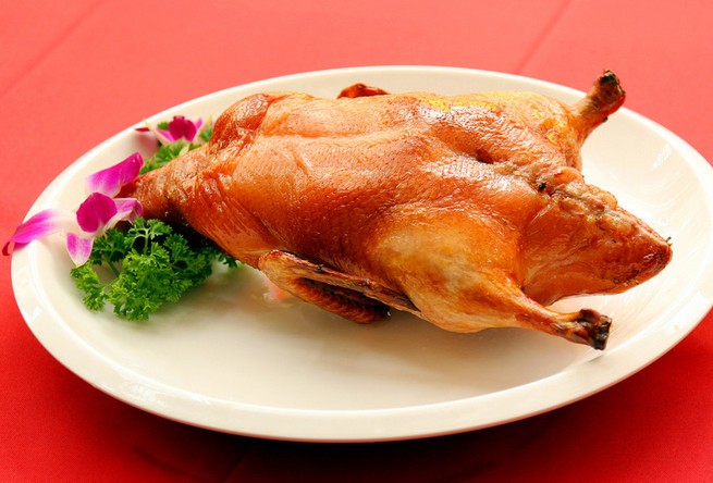 香酥鸭是一道江苏,四川,湖南等地的汉族传统名菜,在川菜,苏菜,湘菜中均有此菜,鸭子经调味品腌渍,再上笼蒸至熟烂,最后经油炸而成。此菜色泽红亮,口感皮脆肉酥。以葱白、甜面酱、番茄酱佐食,味更丰富。此菜注重工艺造型,讲究原料配合,形态美观,色调柔和,集松泡、酥脆、软嫩、鲜香于一体,深受四方宾客欢迎。传统卤鸭的基础上,又加入了一味葱香,给鸭子穿上一层香葱,然后用油炸而且当着客人的面由服务员打开竹网拨开小葱。