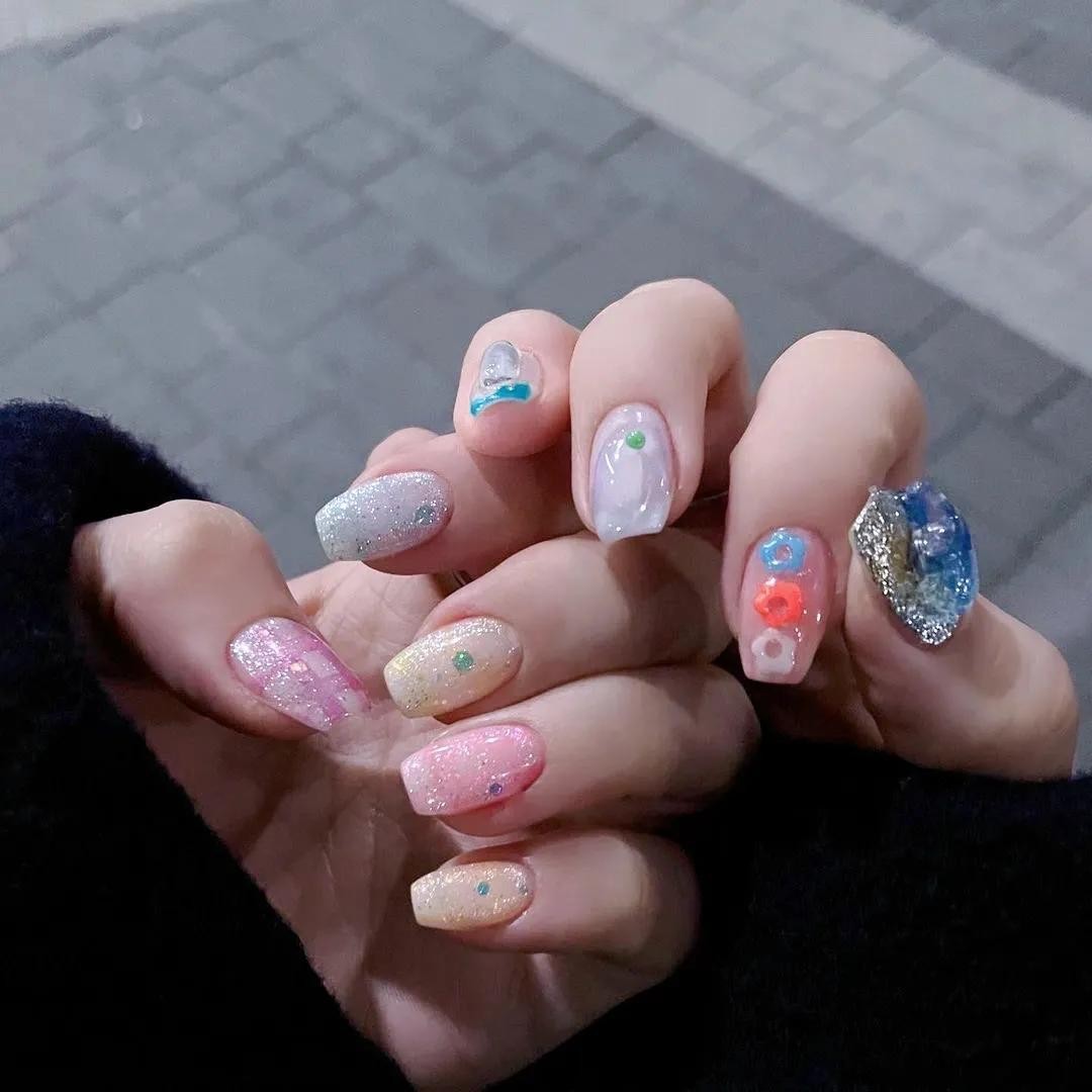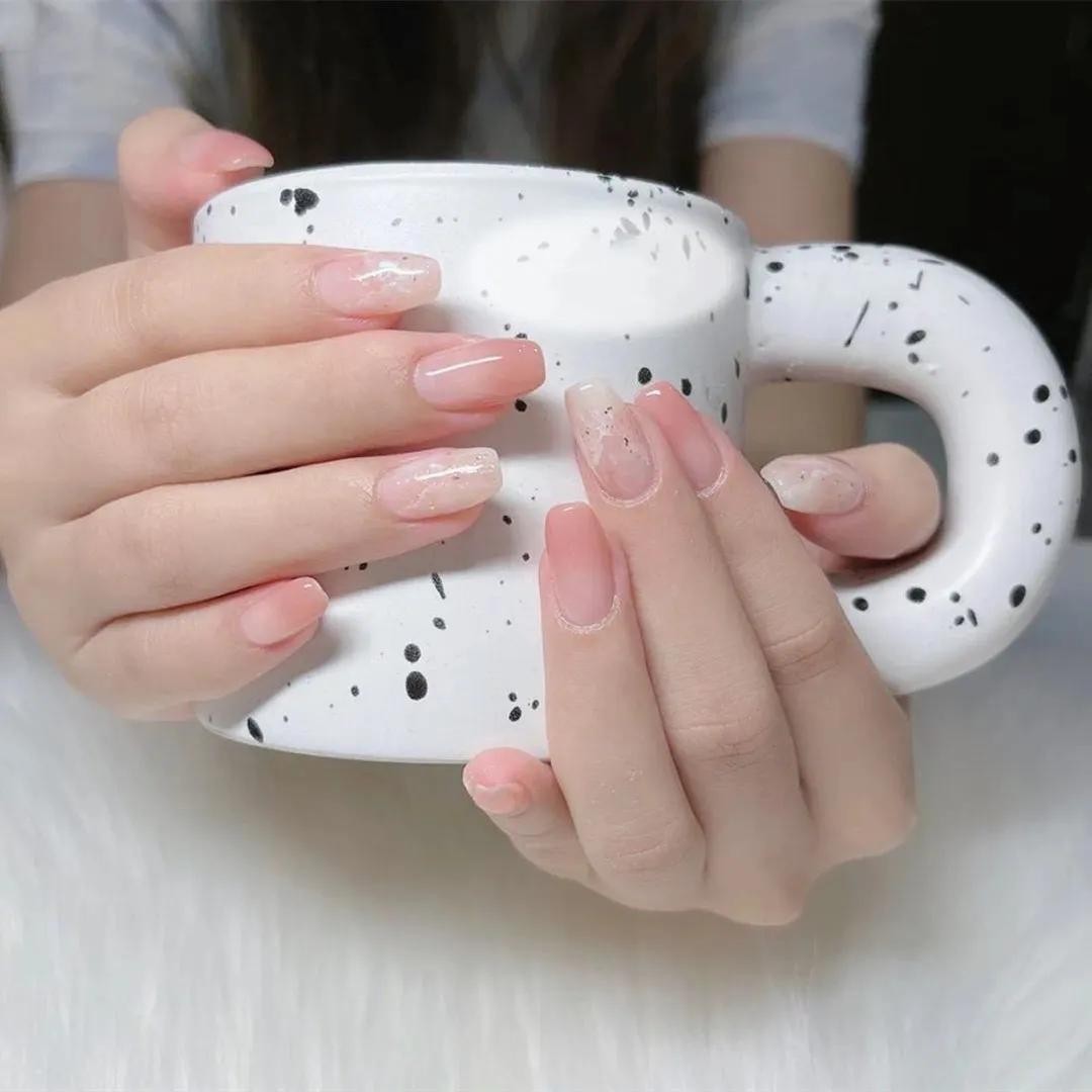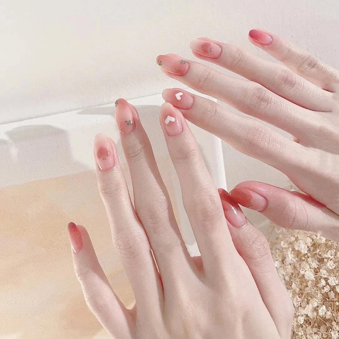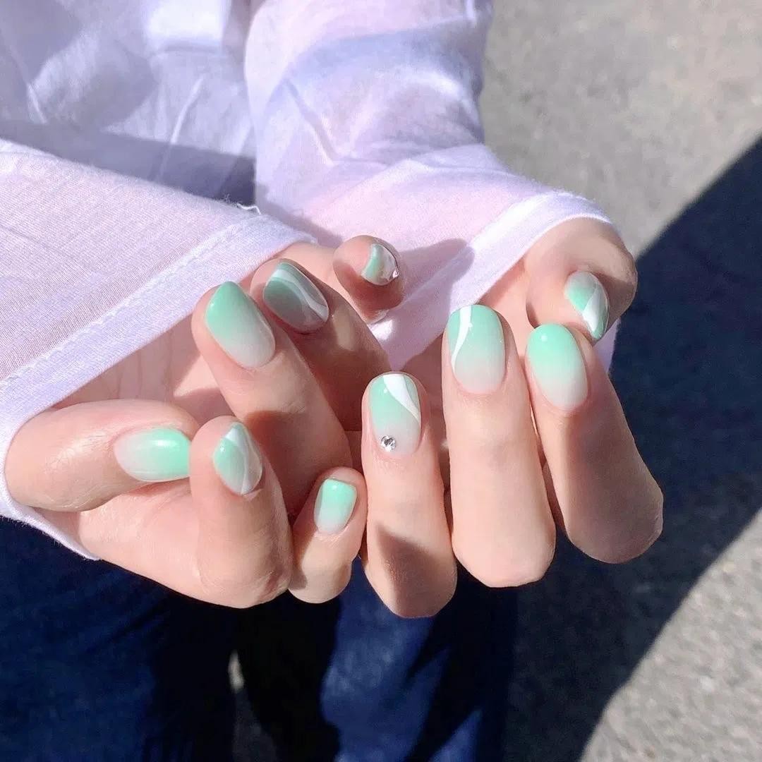 其中小编觉得最打眼的还是冰透渐变系列的美甲,上手水汪汪的,像小家碧玉般楚楚动人~夏天做它准没错!